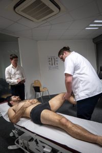 Dès la première année, les étudiants s’exercent grâce à des travaux dirigés et des ateliers pratiques. Cet apprentissage progressif s’intensifie jusqu’à l’intégration au Centre Étiopathique de Toulouse, où ils prennent en charge de vrais patients sous la supervision de praticiens diplômés.